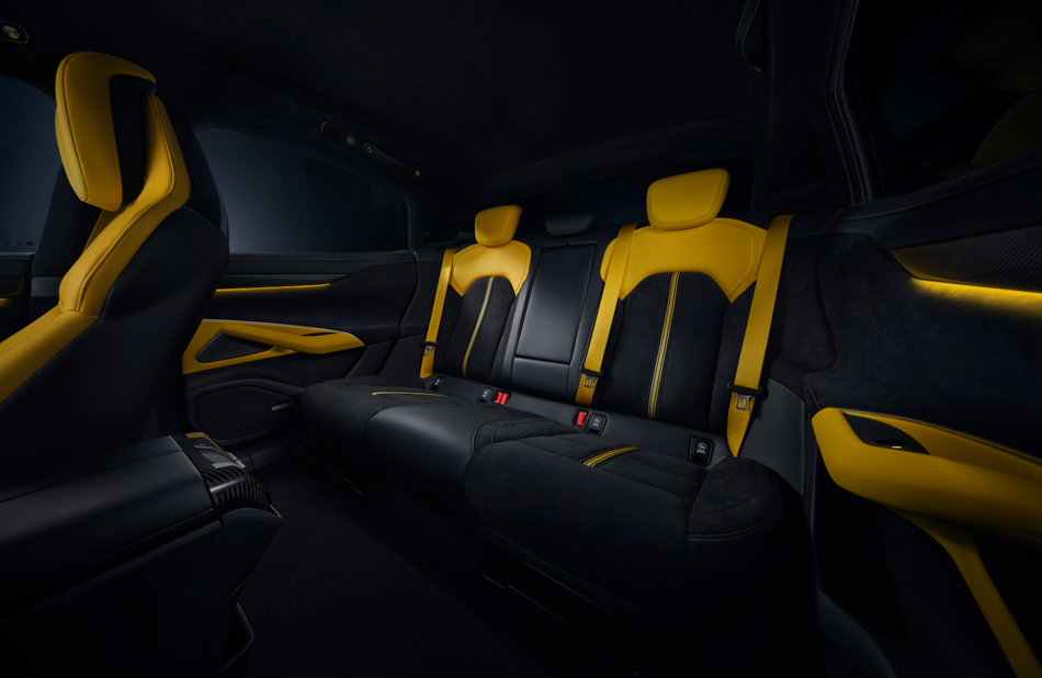 실내 소재는 베건 레더(비건 가죽), 앰비언트 라이트 등으로 고급스러운 분위기를 연출합니다.